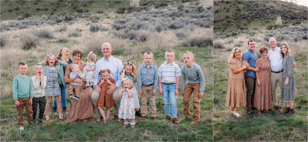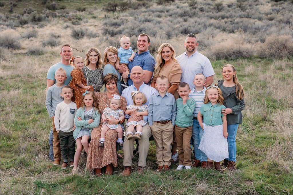 Casual clothes…dressier is better: Extended family photos are a special occasion! Getting photos ALL together just doesn’t happen that often. I recommend dresses for the ladies and for guys I recommend slacks and a button up shirt (no logos!). These outfits are more flattering for all body types and look more special for photos.