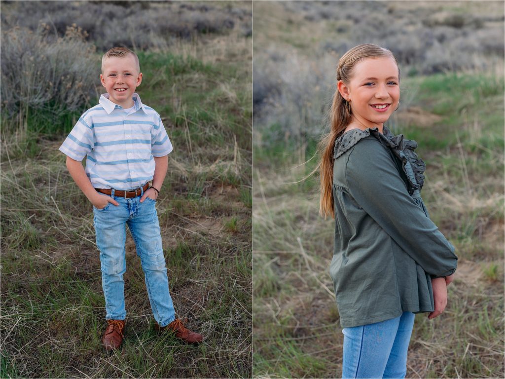 The Collins family chose their colors by first looking at the decor and colors they all had in their homes. They looked at examples online and came up with 4 color combinations. As you can tell, all of the neutral colors coordinate, not match! This is what your goal should be! They chose green, brown, tan, and light blue. You should also consider the landscape and colors in the background of your photos. Since their photo shoot took place in the spring (April), I told them there would be green and brown tones in the background.