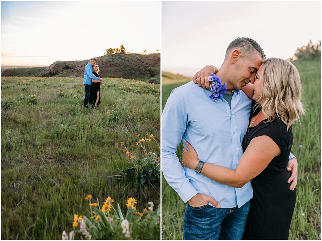 This location is only 7 minutes away from downtown Boise, Idaho. The best part about this place is that I can shoot sessions here year-around because there are so many great spots. Spring is my favorite time for the wildflowers that come out in May or early June. In spring or early summer you will see green grass and wildflowers. Later on in the summer and towards fall, the green grass will turn light brown and will be tall.