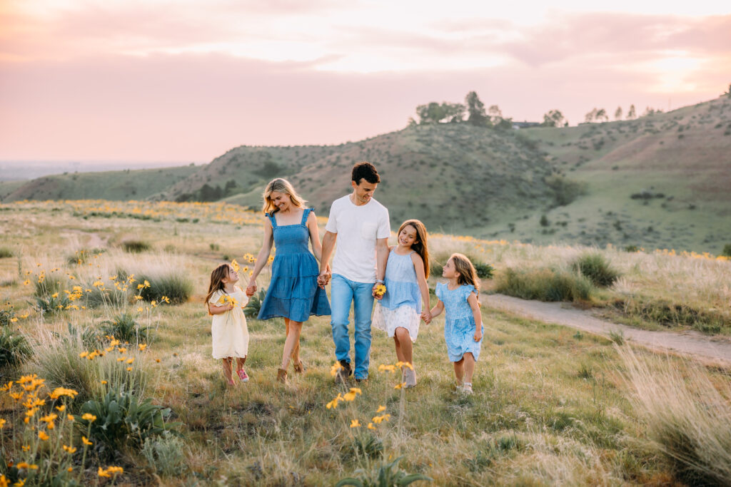 One of the ways we use the best locations for pictures in spring or summer in Boise, Idaho is by starting sessions a little bit later. Sessions would start around 7:30 or 8 PM for locations with trees. Locations in the foothills (no shade) will need to start an hour before sunset, or around 8 to 8:30 PM.