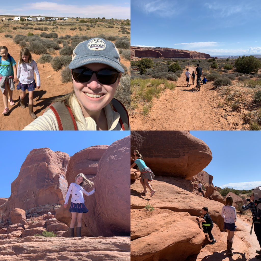 The next place we visited was Double Arch Trail. This one was also very easy and great views! Perfect for the kids. I love how you can get right underneath the arch. The kids loved climbing on the rocks.