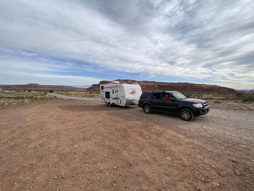 When we got to Highland, UT, the kids and I hung out at my husband’s aunt’s house (which is currently empty). Cameron went to drive 30 min. away to West Jordan to pick up our rented toy hauler. We used Outdoorsy to rent it. After we had everything loaded up in the other toy hauler trailer, it was already dinner time! Our drive to Moab took another 4 hours (we experienced high winds and we were being careful). We got in around 10:15 pm, making it the longest drive ever! Ok, maybe not the longest ever, but it sure felt like it!!!