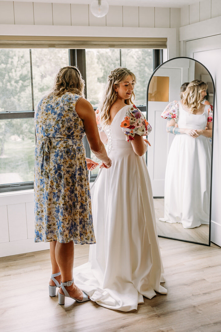 Erika and Cole’s day couldn’t have been more perfect! Loved capturing all the unique details from her dress sleeves, disc golf-themed favors, to the birthday cake (instead of a wedding cake!).