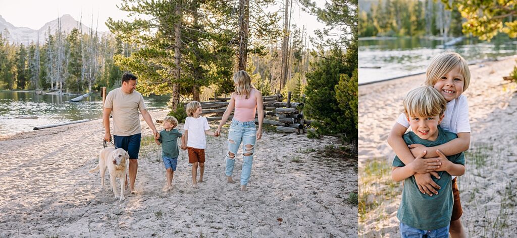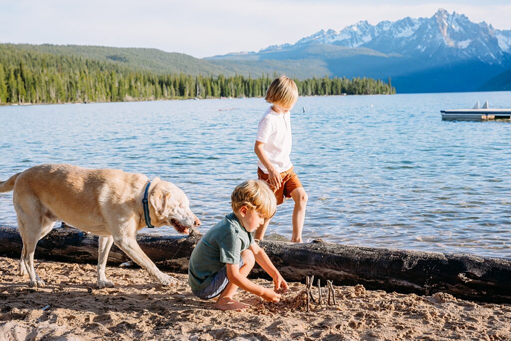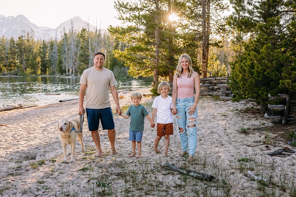 Redfish Lake holds a special place in my heart. We go camping there as a family every year, usually at outlet campground. This spot is VERY popular, and we always feel like we’ve win the lottery with getting a camping spot there. The clear glassy water, breathtaking mountain views, and golden light of the sunset make it a dream location for family photography sessions.